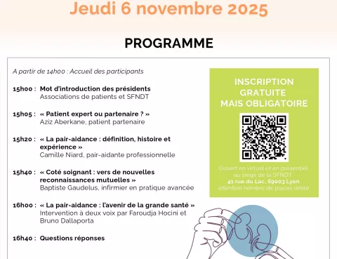 Comme chaque année, la SFNDT organise son Colloque Patients « Interactions Soignés-Soignants » le jeudi 17 octobre 2024 de 15h à 17h. Afin de participer à cet événement, l’inscription est obligatoire…